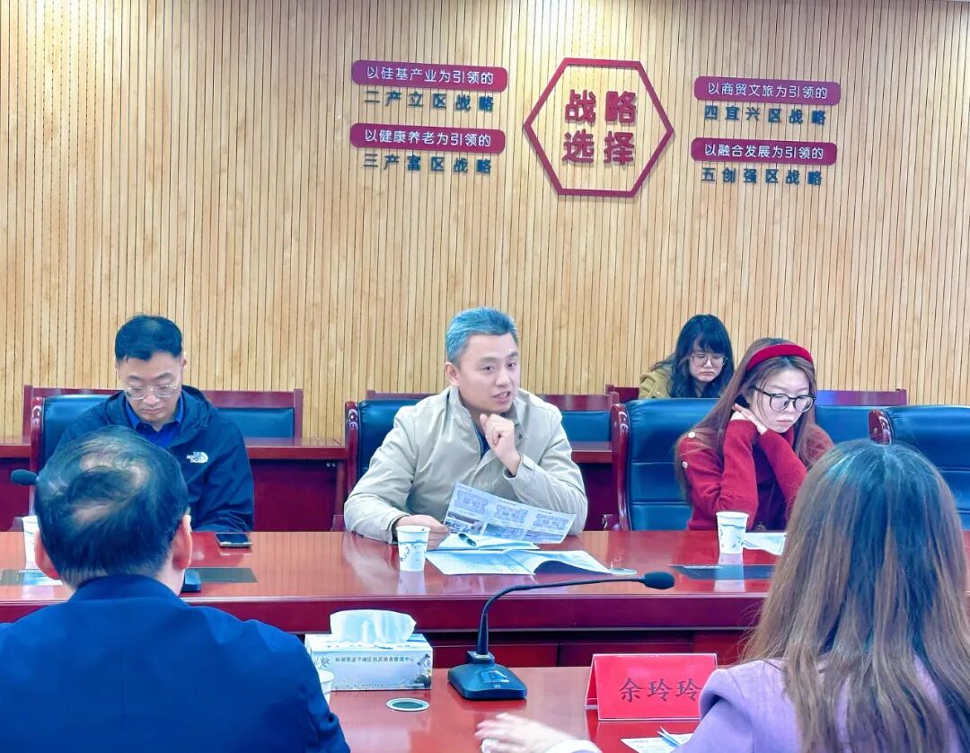 研学首站抵达龙子湖区 ,一场高规格政企对话在此展开。龙子湖区委常委、宣传部部长丁武主持座谈会,区领导与财政、市场局、人社、投促等部门负责人悉数到场,现场解读企业落户政策与营商环境优化路径。从“ 搭台、企业唱戏”的协同机制创新,到重点产业集聚发展的精准施策,政企双方围绕“双招双引”、人才培育、服务优化等核心议题展开深度交流。